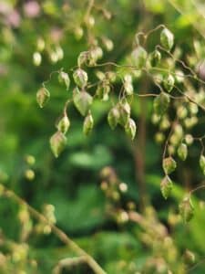 Dit is een inheemse vaste plant, een gras die bloeit met sierlijke druppelvormige aren. Langs één steel bungelen groepjes trilaren, echt een sprookje op een steeltje. Ze geven lucht, licht en beweging aan je creatie.