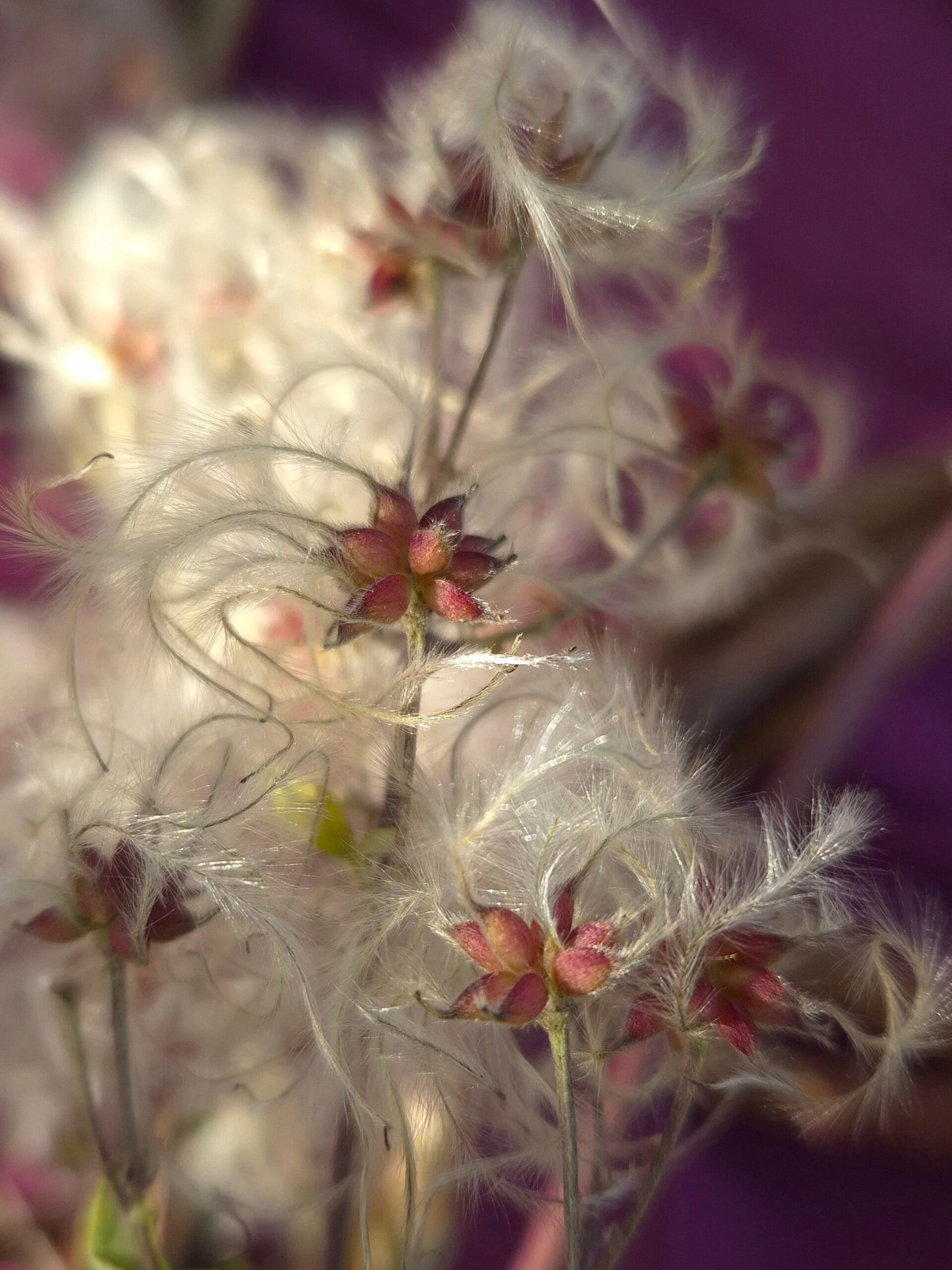 Bosrank is een inheemse clematis die na de bloei pluizige zaadhoofden maakt. Wanneer de zaadhoofden binnenshuis worden gebracht worden ze helemaal ‘fluffy’. Een soort boa’s op steeltjes. Ik gebruik ze vooral in kransen waar ze mooie neutrale ‘vullers’ zijn. Op de achtergrond aanwezig maar ze geven toch een subtiele dromerige sfeer.