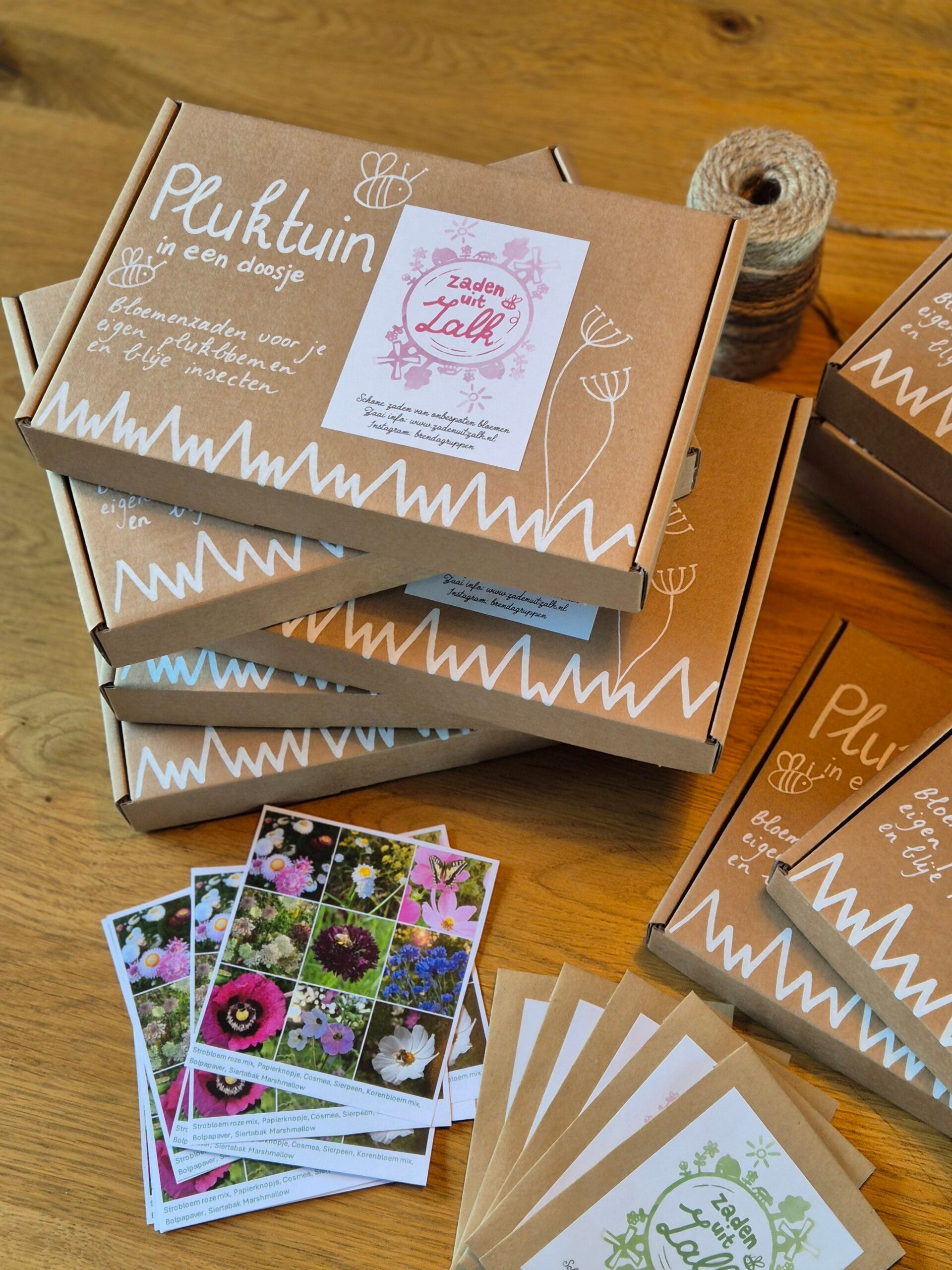 De zaden zitten in een gezellig doosje, met handgetekende illustraties, zoals op de foto te zien is. Dit kan per doosje iets verschillen. Verder bevat het een briefje met informatie en extra tips zodat het doosje ook als cadeau gegeven kan worden.
