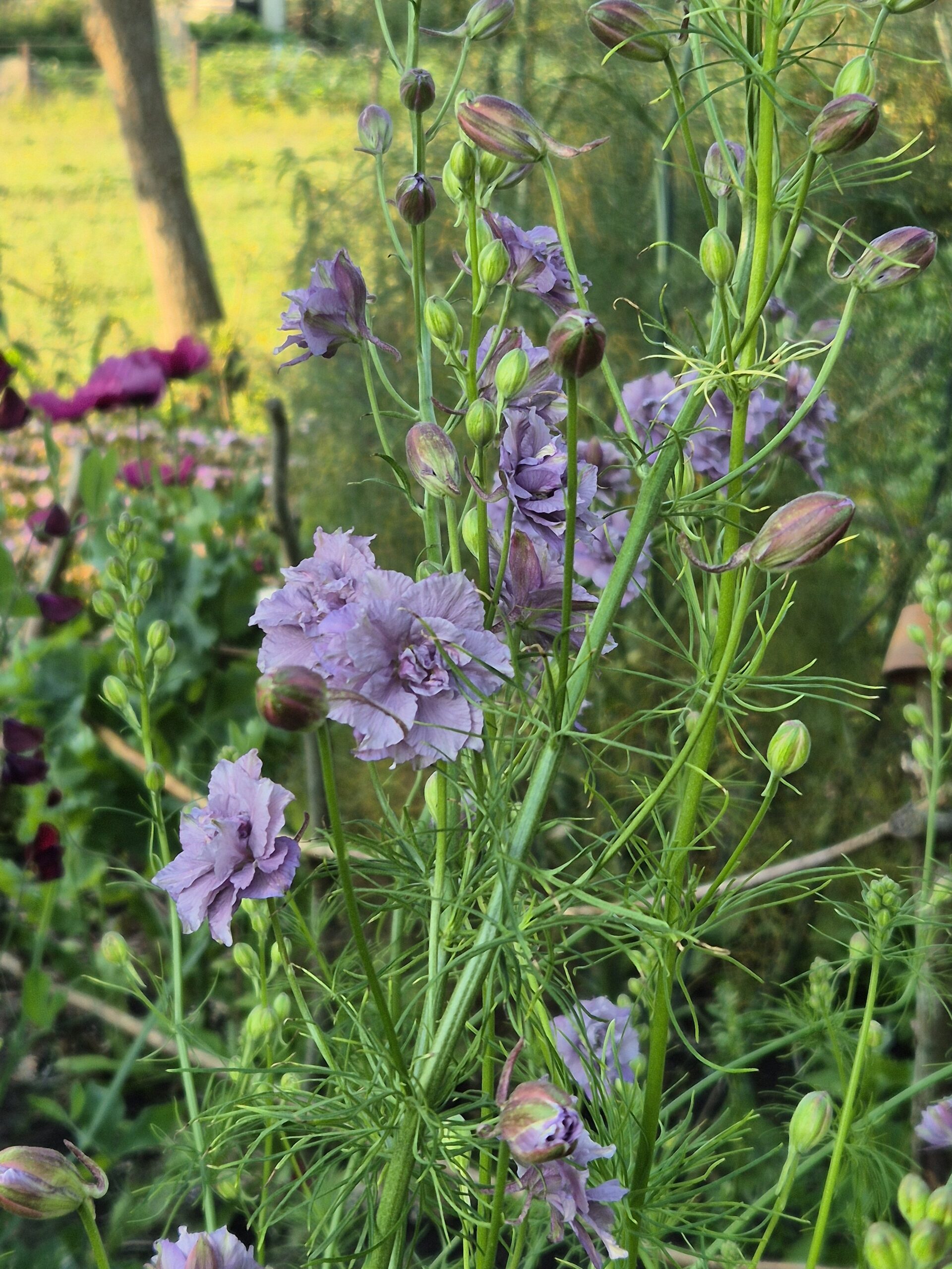 Deze eenjarige ridderspoor bloeit in hetzelfde jaar als waarin hij gezaaid wordt. De zaden van deze ridderspoor zijn geoogst van de prachtige lila bloemstelen die op de foto’s te zien zijn. Door kruisbestuiving kunnen nakomelingen van deze planten een kleur in het blauw, paars, roze kleurenspectrum krijgen, maar ik verwachtoverwegend Lila. Aan vertakte stelen zijn langs de steel de karakteristieke sierlijke ridderspoor bloemen gevormd. De planten geven wekenlang een bloemenzee met een lengte tussen 100 en 140 cm. Door hun lengte en kleur zijn ze een echte blikvanger in de bloemenborder. Ook als plukbloem zijn ze schitterend in een boeket. De bloemen blijven lang mooi en openen zich zelfs nog op de vaas, wanneer ze net voor het bloei stadium zijn geplukt. Ruim 80 zaden per zakje.